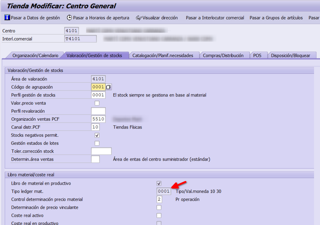 El ledger de materiales lo determina el sistema buscando en la tabla TCKM2 el primer centro de la misma sociedad que el centro que se esta editando.